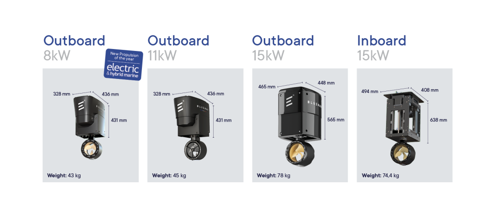 Met de BlueSpin 8, 11 en 15 kW elektromotoren kan elke boot worden omgebouwd tot een hybride boot zonder grote ingrepen in de scheepsromp of constructie. In de speciaal ontwikkelde behuizing zijn de motoren ophaalbaar en stuurbaar. Booteigenaren kunnen genieten van het beste van beide werelden vanuit een unieke ervaring met optimale functionaliteit.